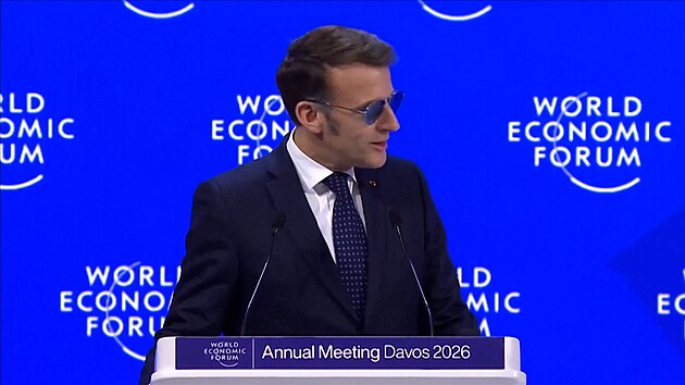 Emmanuel Macron na výročním zasedání Světového ekonomického fóra v Davosu (20. ledna 2026)