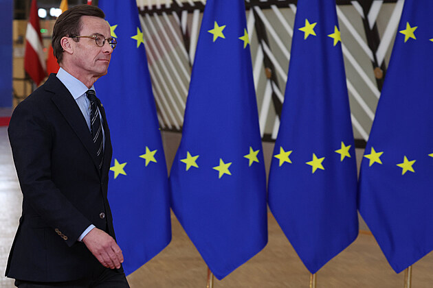 védský premiér Ulf Kristersson na summitu EU v Bruselu (22. ledna 2026)