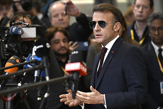 Francouzský prezident Emmanuel Macron před začátkem mimořádného summitu Evropské unie v Bruselu, který se koná kvůli dění kolem Grónska.