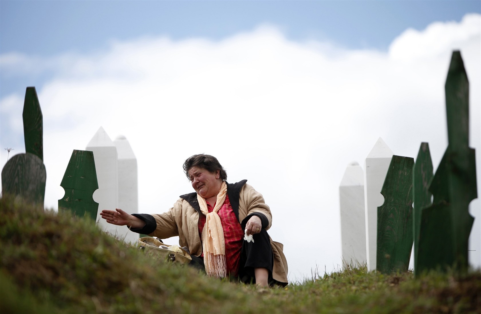 Bosňácká žena pláče na hrobech svých blízkých, které během války zabily srbské jednotky.
