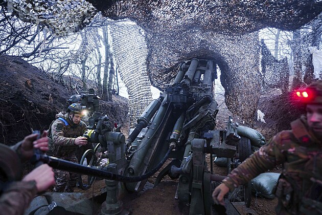 Ukrajinští vojáci pálí z houfnice M777 na ruské pozice na obec Velyka Novosilka v Doněcké oblasti. (26. ledna 2025)