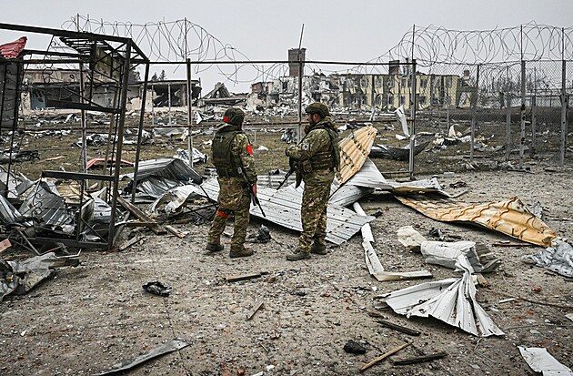 Ruští vojáci obsadili areál někdejší věznice v dobyté osadě Malaja Lokňa v Kurské oblasti. Na zbytky budov umístili ruskou vlajku. (11. března 2025)