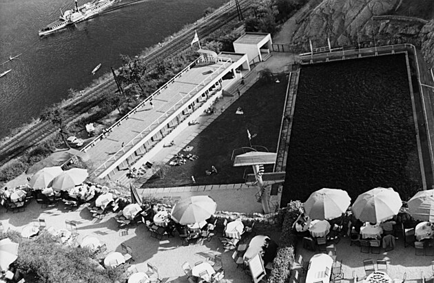 Ve třicátých letech přistavěli k terasám i bazén, dole v bývalém kamenolomu, který s restaurací spojovala lanovka. Byl to první padesátimetrový bazén v republice a bývalo v něm plno, i když měl nejstudenější vodu v Praze.
