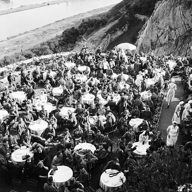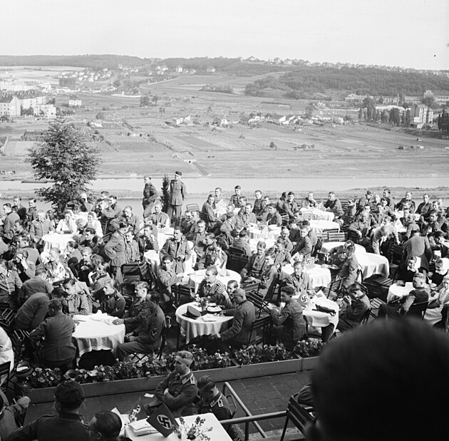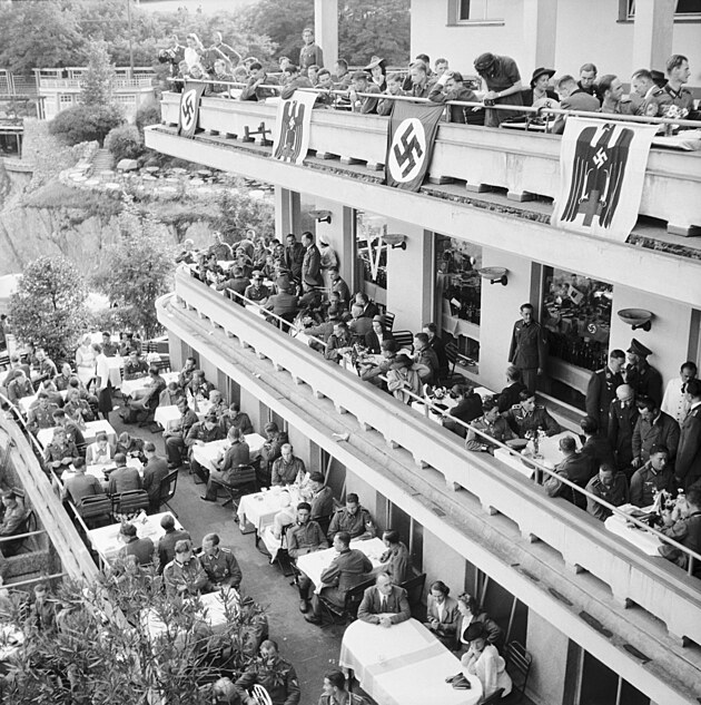 Nacisté nechali jako první věc postavit na terasy přímou železnici, která sem dovážela hosty de facto bez zastávky. Nepříjemně se tak změnilo osazenstvo restaurace. Snímek je z roku 1942.