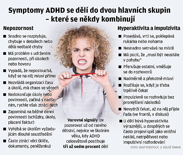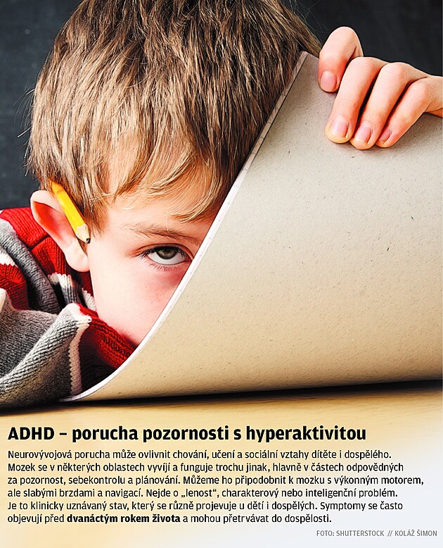 ADHD - porucha pozornosti s hyperaktivitou.
