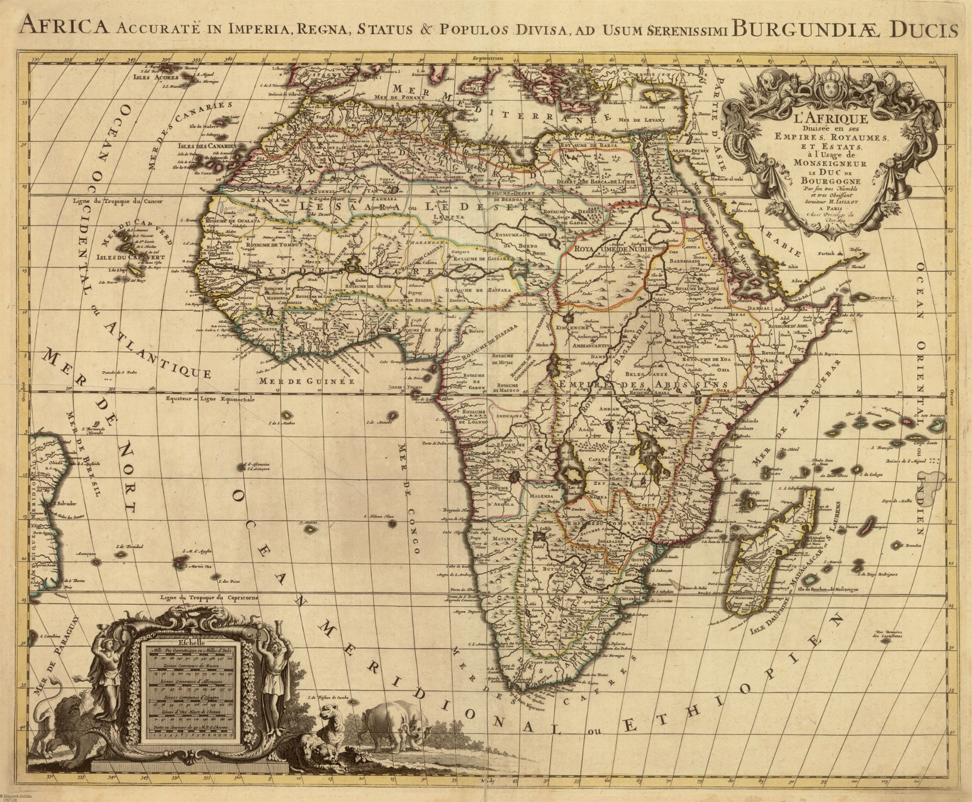 Jaillot, Alexis-Hubert, Afrika rozdělená na říše, království a státy, 1694