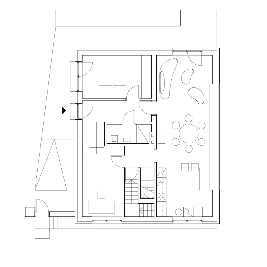 Hlavní část domu pokračuje ve venkovní terasu.