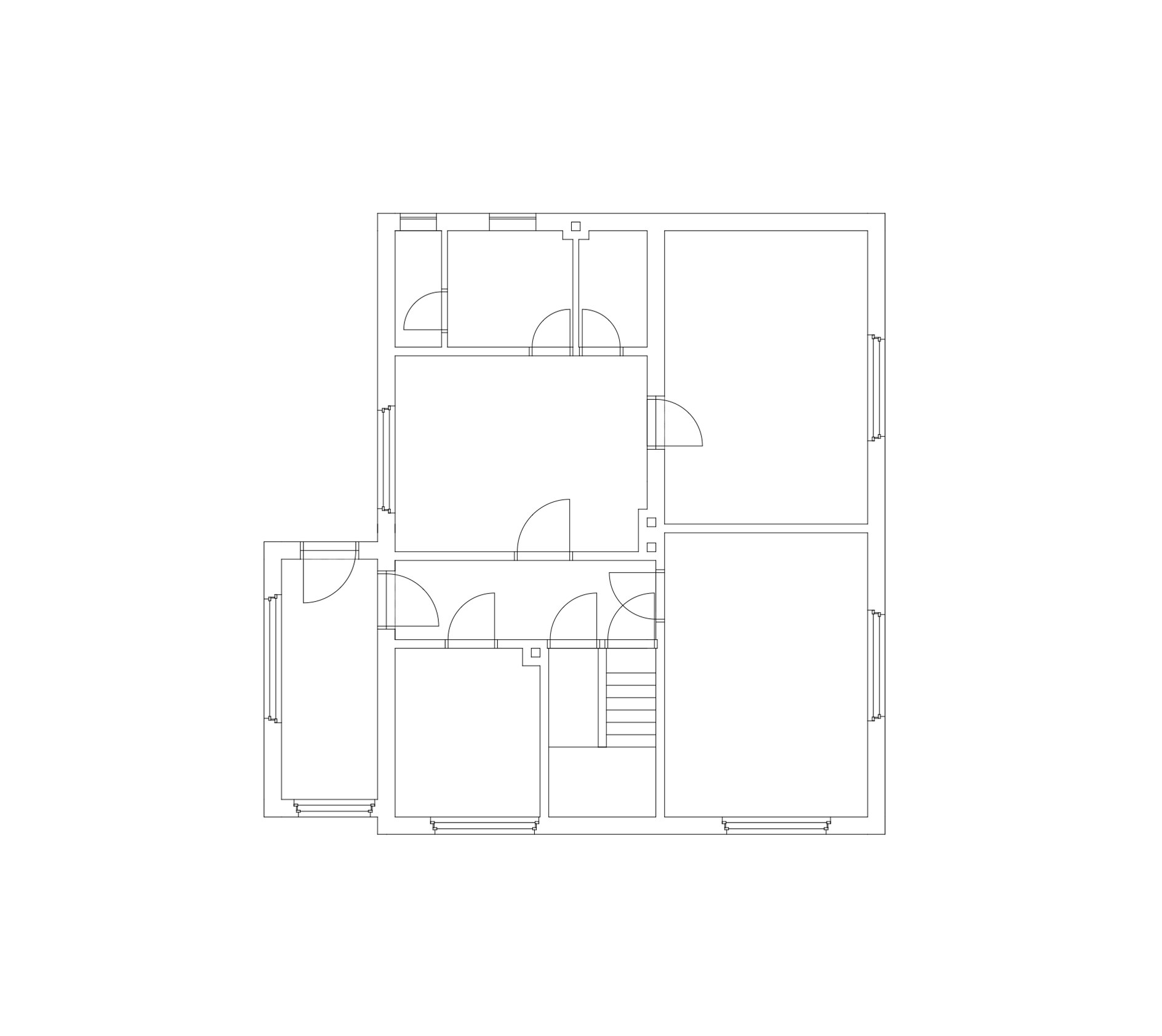 Půdorys prvního patra před rekonstrukcí.