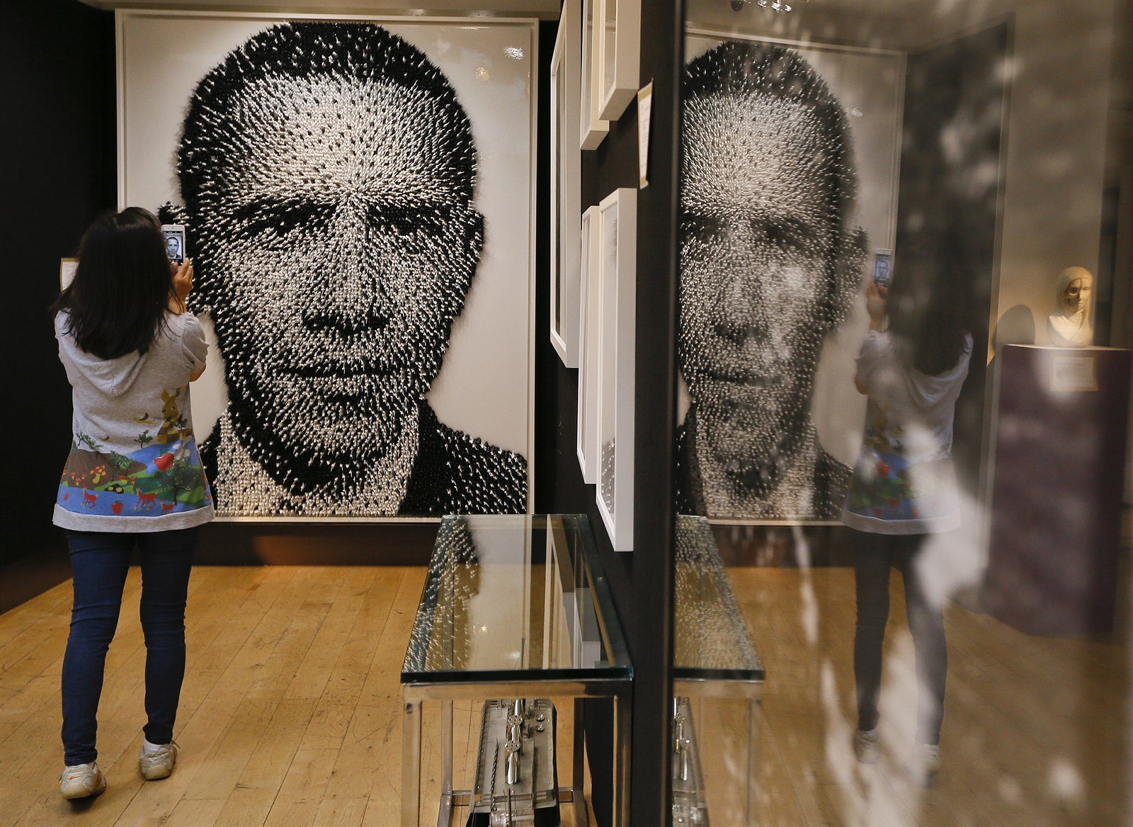 Detailu portrétu Baracka Obamy vytvořený z několika tisíc vojáčků půjde do aukce.
