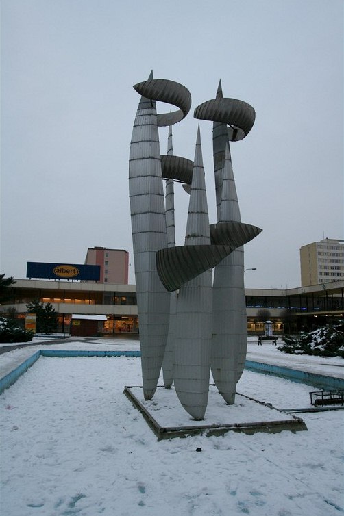 Kinetická plastika na pražském sídlišti Novodvorská, je dílem Jiřího Nováka