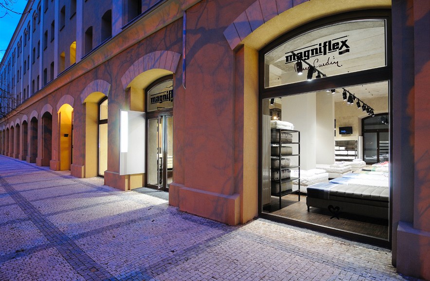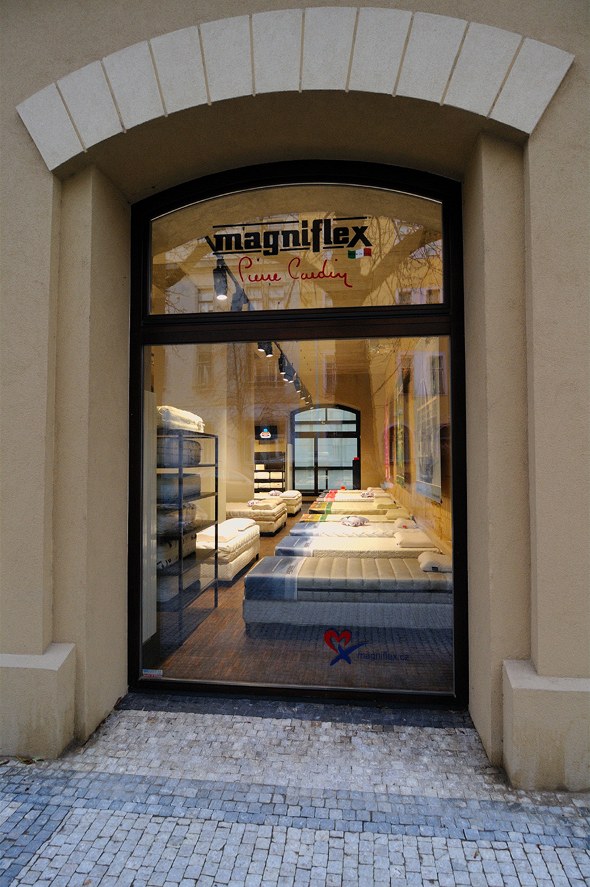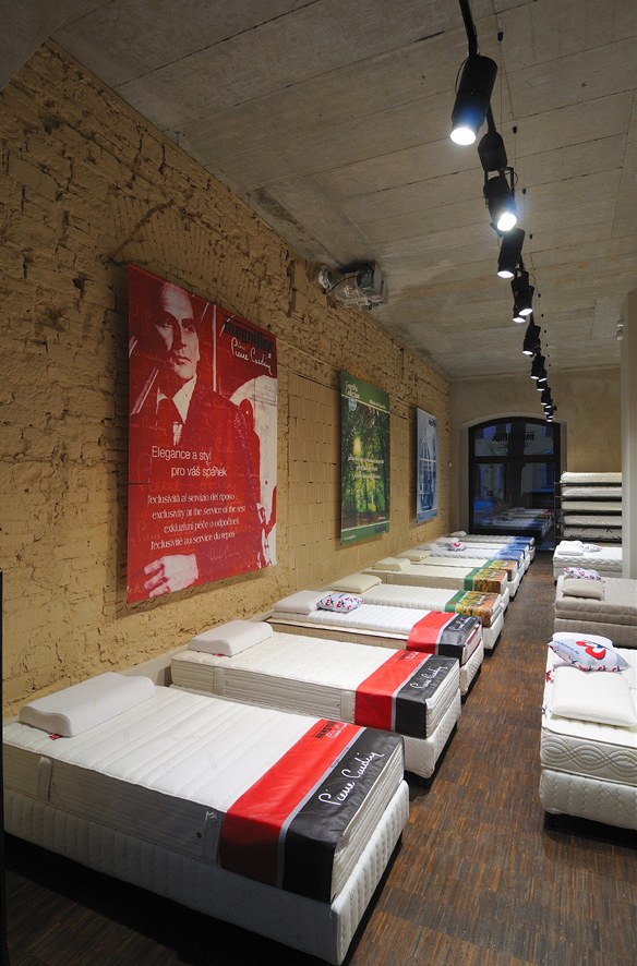 Nedávno otevřený obchod v Bratislavě opět vymýšlela architektka Markéta Cajthamlová, nepřekvapí proto stejná logika uspořádání, přestože slovenský obchod sídlí v novostavbě.