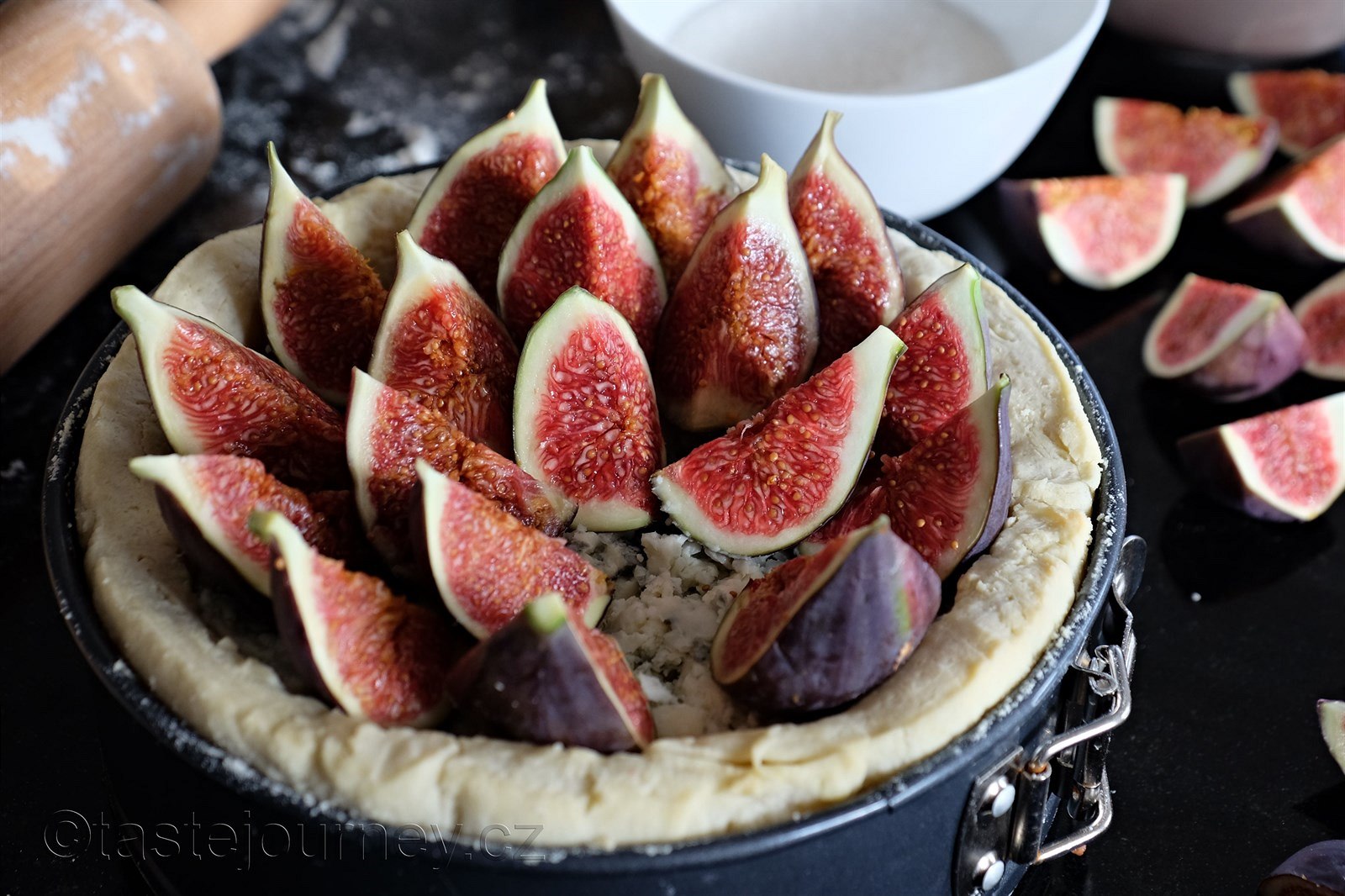 Fíkový koláč z křehkého těsta s gorgonzolou.