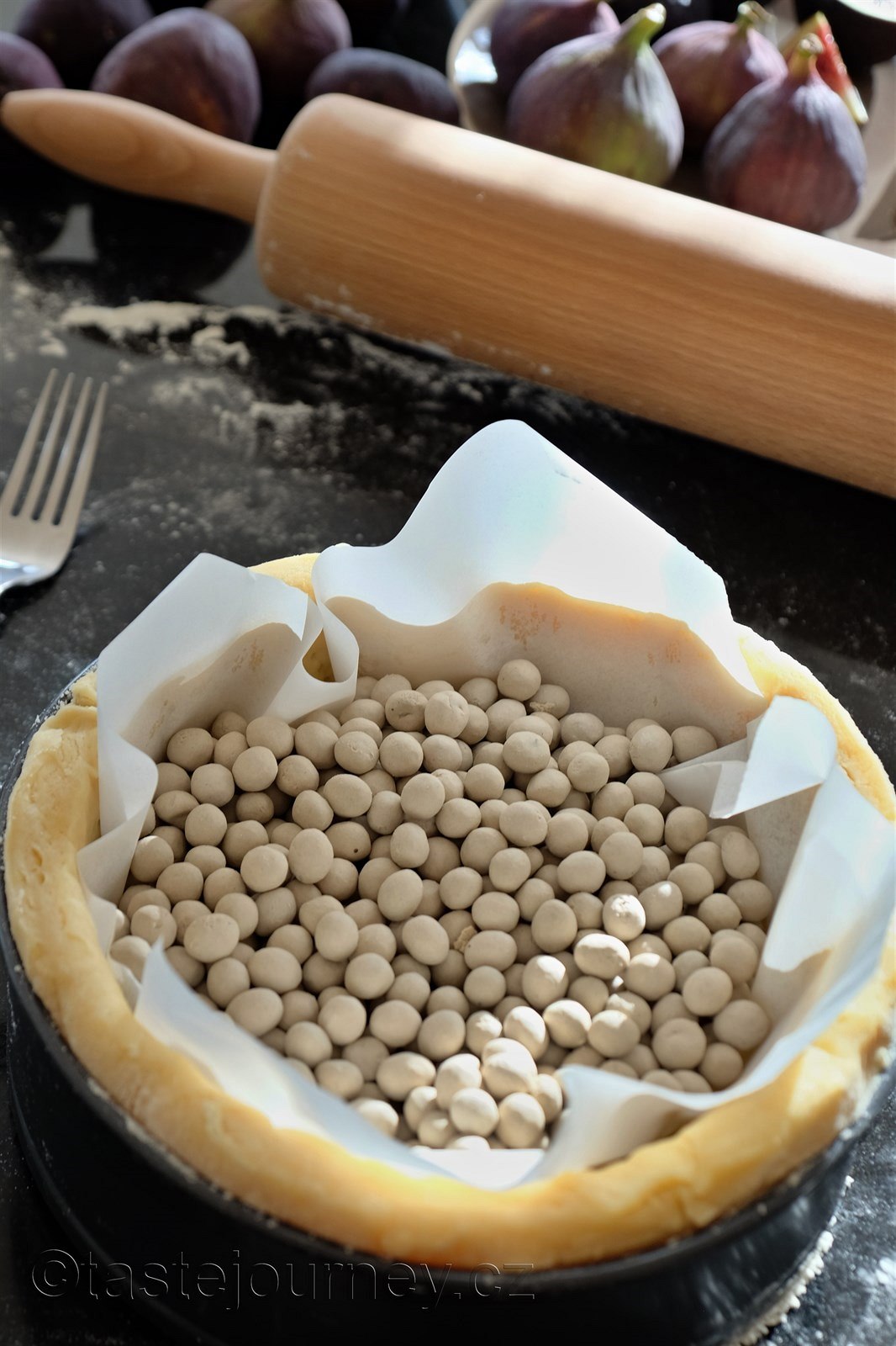 Těsto zatížíme kuličkami, aby se nezvedalo.