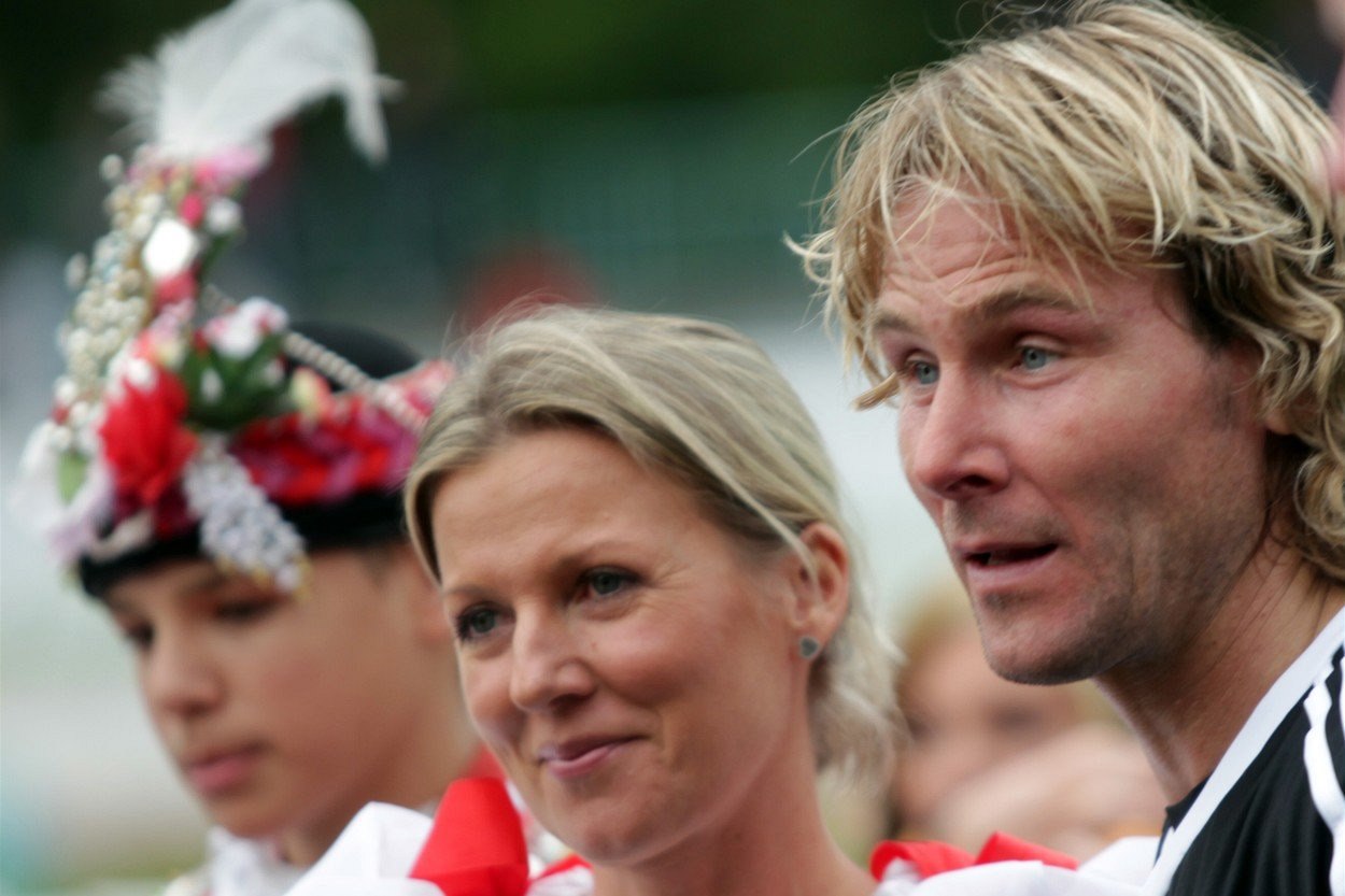 Pavel Nedvěd s manželkou Ivanou na fotbalové exhibici (Hodonín, 23. září 2012)