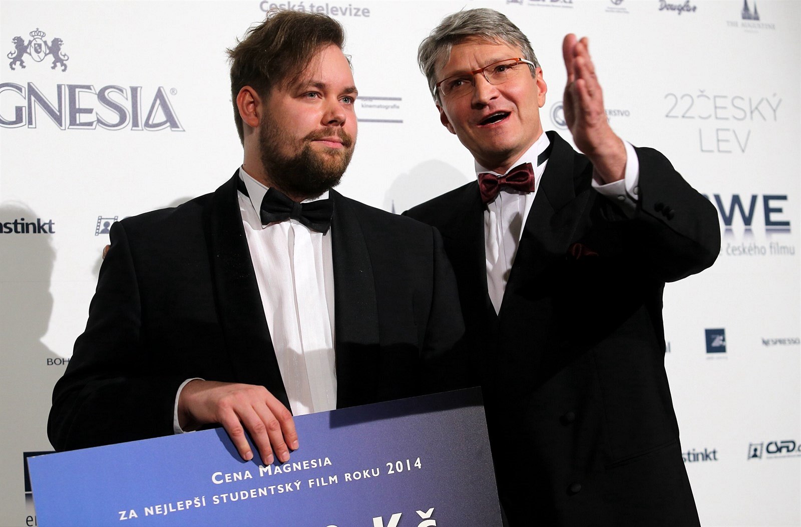 Pavel Nosek získal ocenění za nejlepší studentský film, které mu předal Jan Svěrák