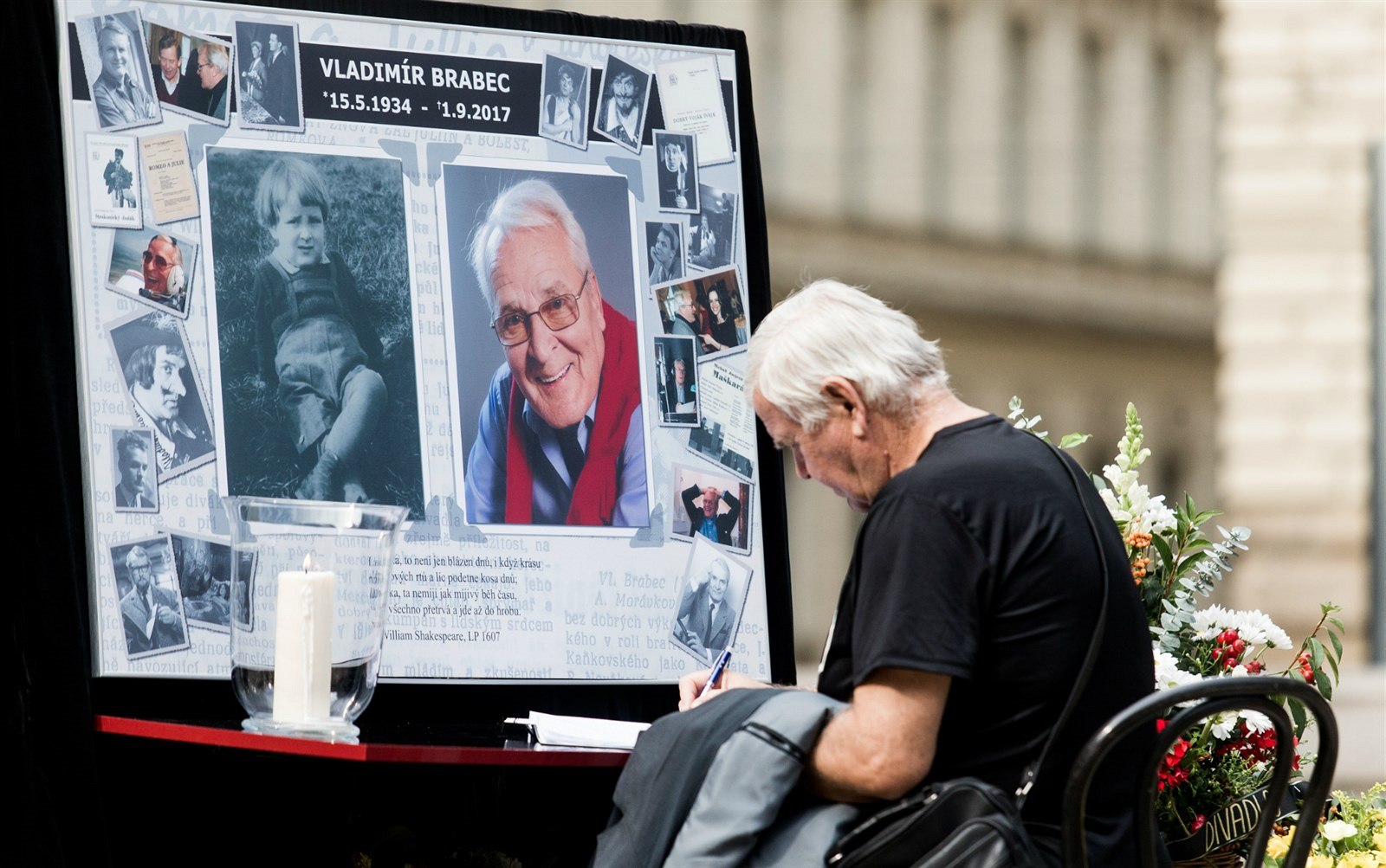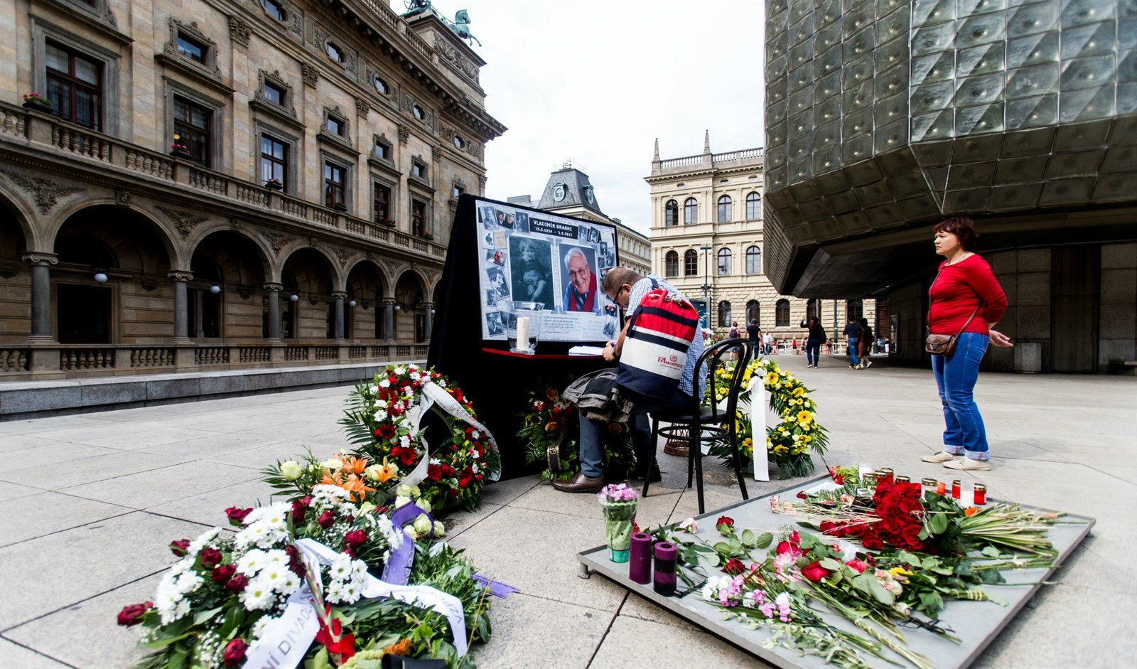 Stovky lidí se v sobotu od rána na náměstí Václava Havla u Národního divadla v Praze přišly rozloučit s hercem Vladimírem Brabcem.
