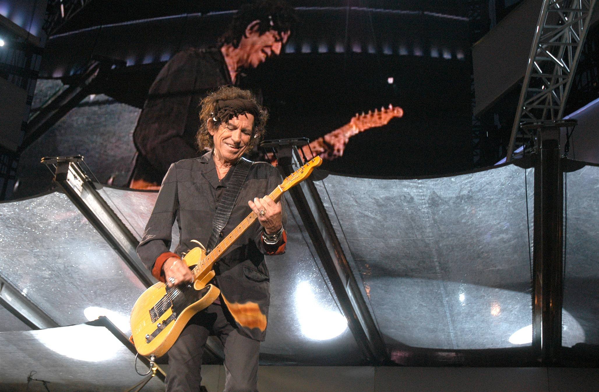 Keith Richards z Rolling Stones při koncertu v Praze na Letné v roce 2003.