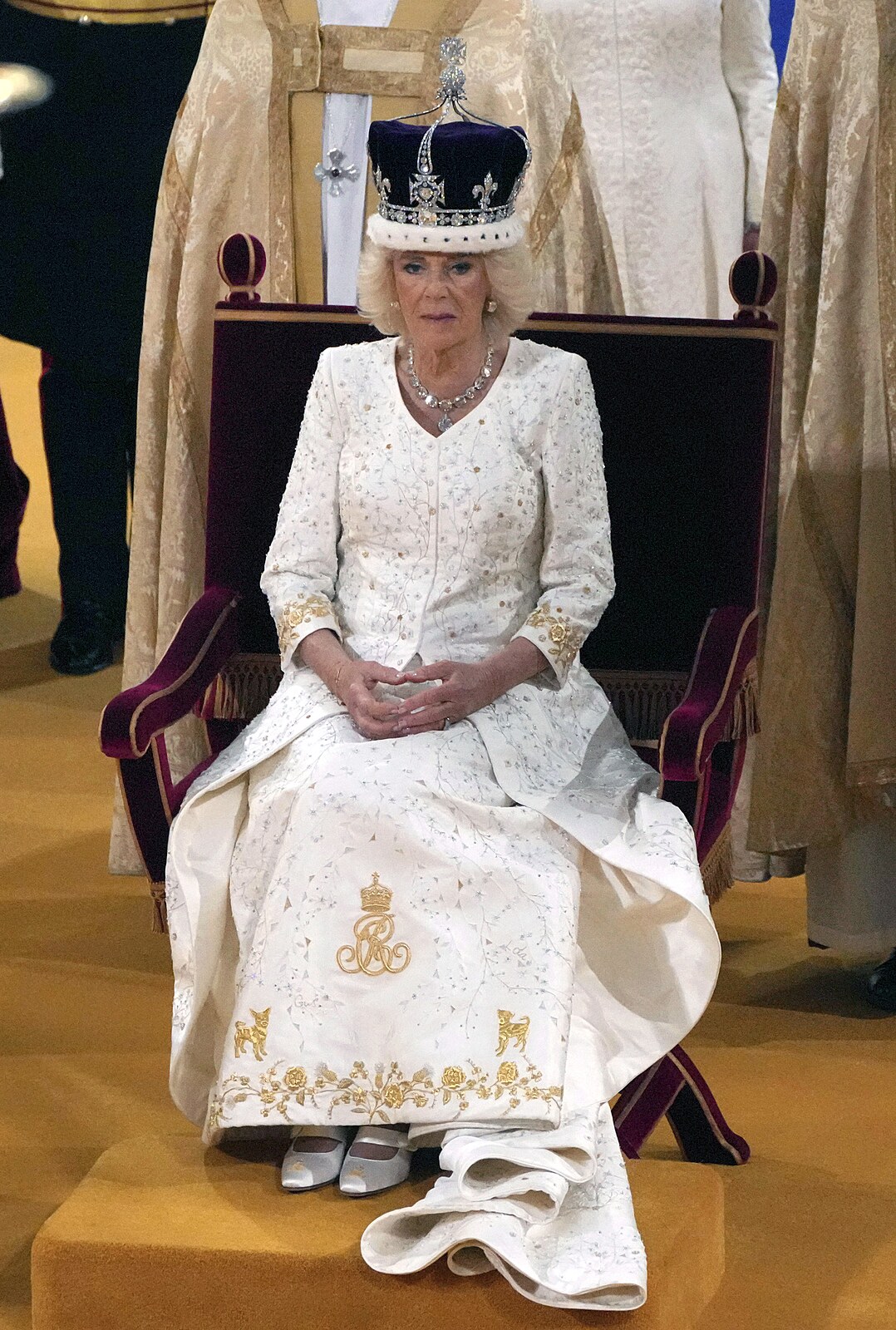 Královna Camilla v den korunovace britského krále Karla III. (Londýn, 6. května 2023)