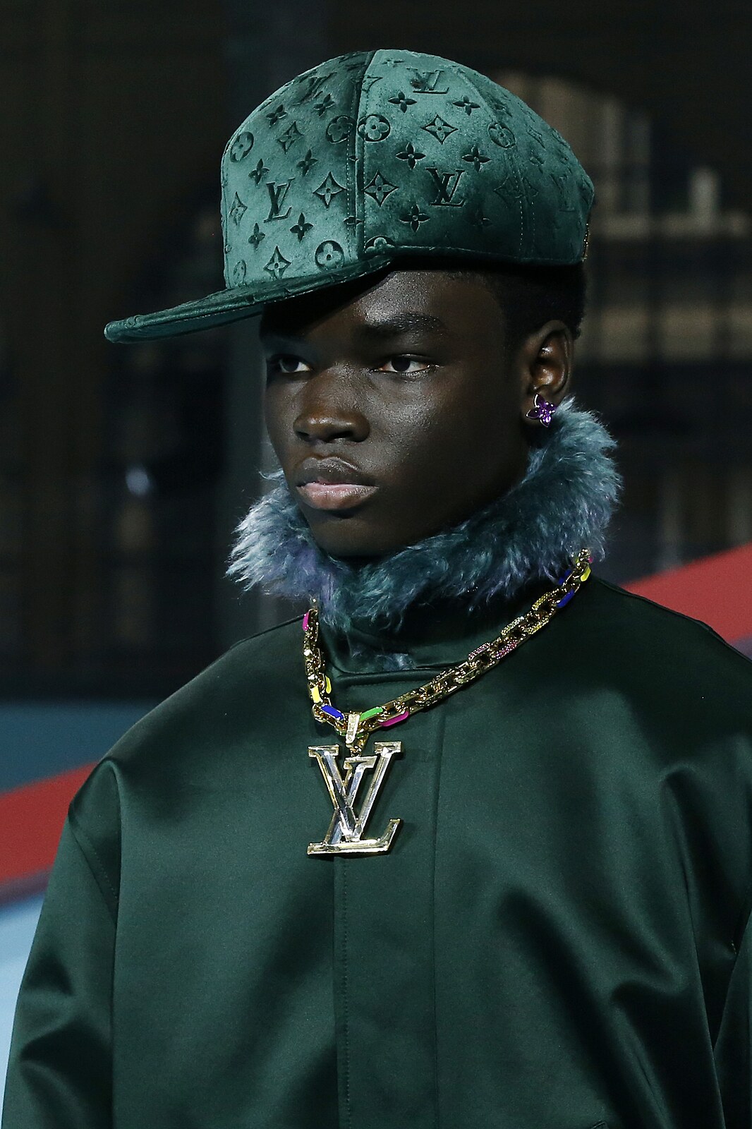 Vrabčák. Designér Virgil Abloh se protentokrát inspiroval u hudebníka Jamiroquaie, když to minule s Michaelem Jacksonem moc dobře nedopadlo. A vyšly mu z toho pro Louise Vuittona kreace, které by ocenil nejeden opeřenec hledající hnízdo.