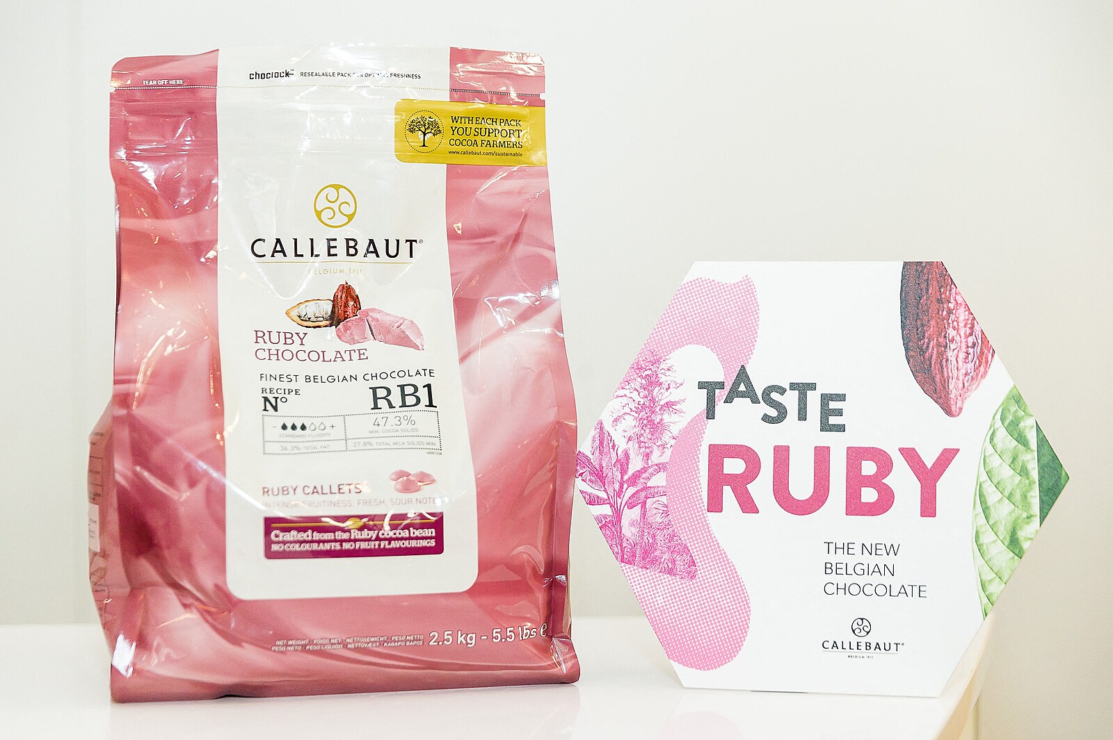 Růžová revoluce. S čokoládou jasně růžové barvy přišel na trh švýcarský výrobce kakaa a čokolády Barry Callebaut v roce 2017. Recept si značka úzkostlivě hlídá a konkurence o něm vede bouřlivé diskuse.