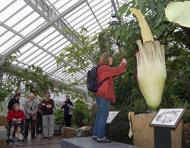 Áronovitá rostlina pochází ze západní Sumatry a v přírodě už téměř vymřela. V minulých letech vykvetla například v britské Královské botanické zahradě v Kew, v německém Bonnu nebo belgickém Meise, kde za poslední tři roky kvetla dokonce dvakrát. V Liberci půjde o premiéru.
