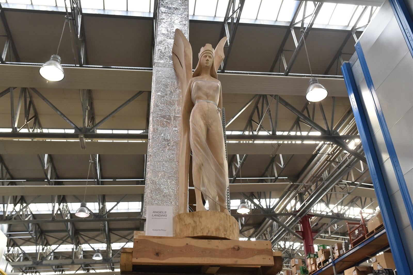„Andělé přistávají.“ Socha anděla, kterou ze dřeva vyřezal jeden z mechaniků.