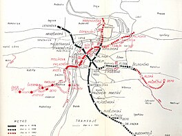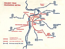 První plány na vybudování podzemní dráhy v Praze se datují už ke konci 19. století. Z počátku se počítalo s podpovrchovou tramvají, v průběhu let se měnily i představy o tom, kudy trasy povedou nebo jak se budou jmenovat stanice. Podívejte se, co všechno mohlo být, kdyby...