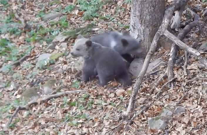 Na zveřejněné nahrávce si spolu hrají dvě mláďata a dospělá medvědice. Medvíďata spolu závodí, šplhají po stromě a perou se. Nakonec se s nimi pomazlí jejich máma.