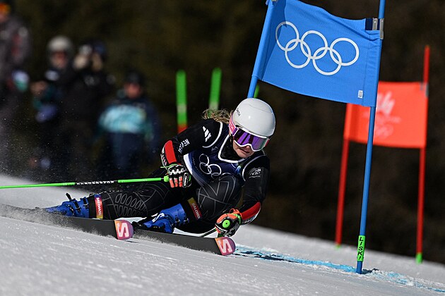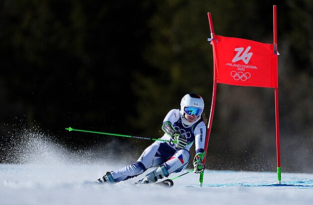 Česká reprezentantka Alena Labaštová sjíždí trať během závodu žen v obřím slalomu. (15. února 2026)
