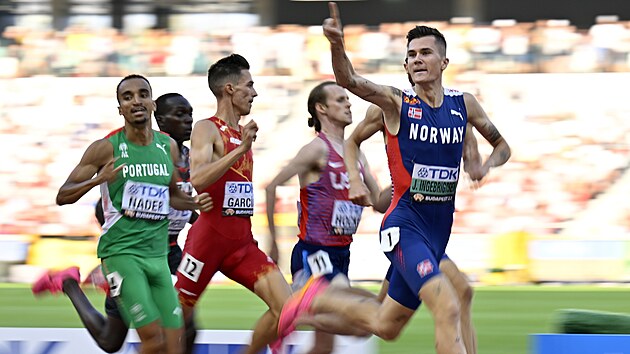 Boj o finále absolvovali muži v běhu na 1500 metrů, vytoužený titul mistra světa může stále získat olympijský vítěz Jakob Ingebrigtsen. Norský závodník proběhl cílem v čase 3:34,98, ještě před finišem radostně mával divákům.