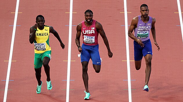 Nejočekávanější disciplína mužů na 100 metrů nabídla parádní podívanou. Z vítězství se radoval nejrychlejší muž semifinále, šestadvacetiletý Američan Lyles využil svých gymnastických schopností a do cíle se prošvihnul v nejlepším letošním čase 9,83 sekundy.