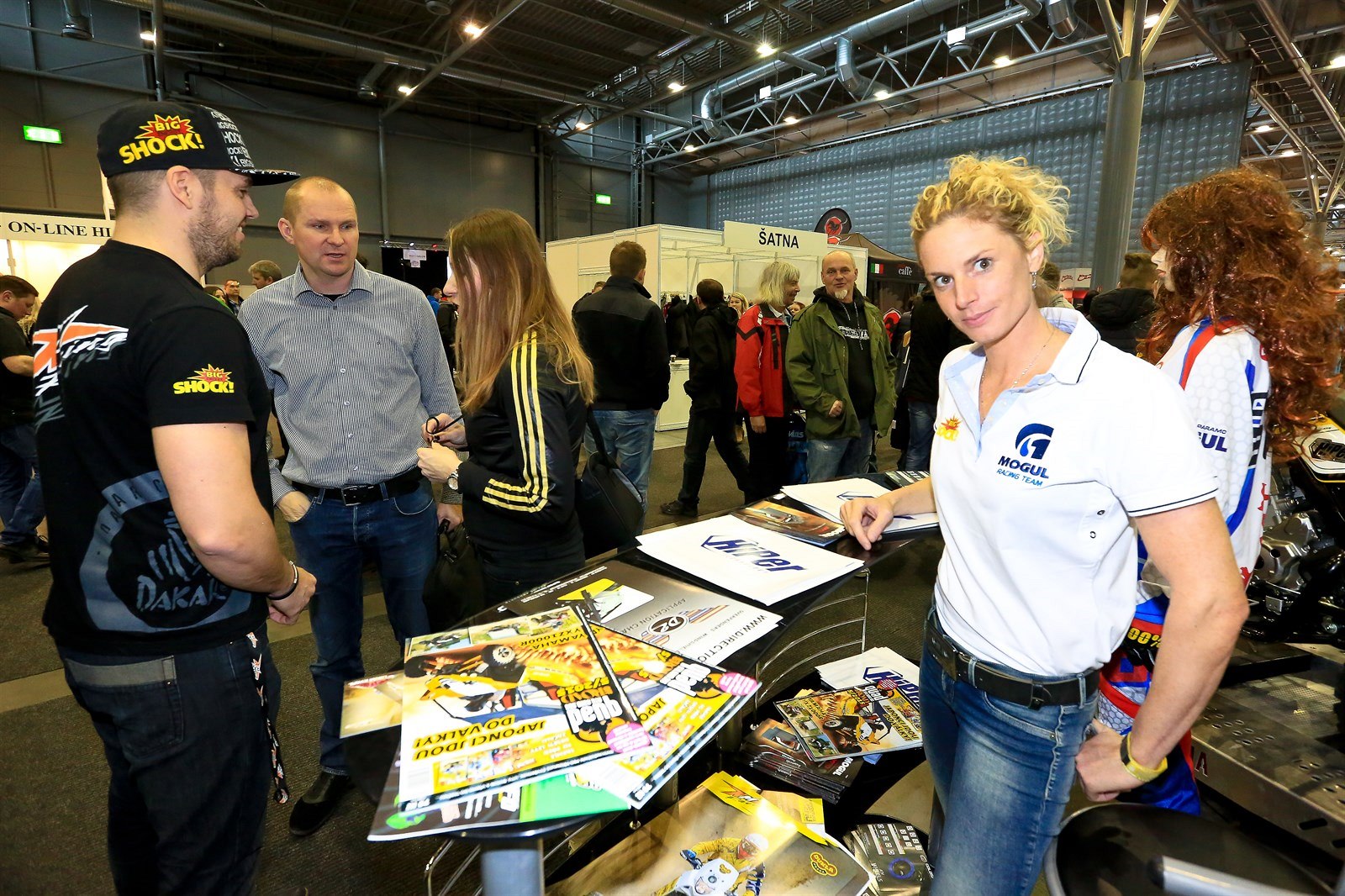Podle ředitele akce Miloně Mlčáka letos přijeli všichni významní světoví výrobci motocyklů. Na snímku Olli Roučková.