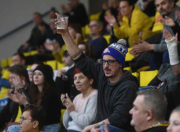 Generální manažer Slunety Tomáš Hrubý splnil sázku za vítězství v derby s Děčínem a celý zápas s Ostravou sledoval v klubovém kulichu, v něm dorazili i někteří fanoušci.