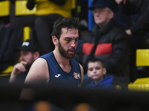 Ostravský Samuel Denis Godwin opouští hřiště s krvavým šrámem.