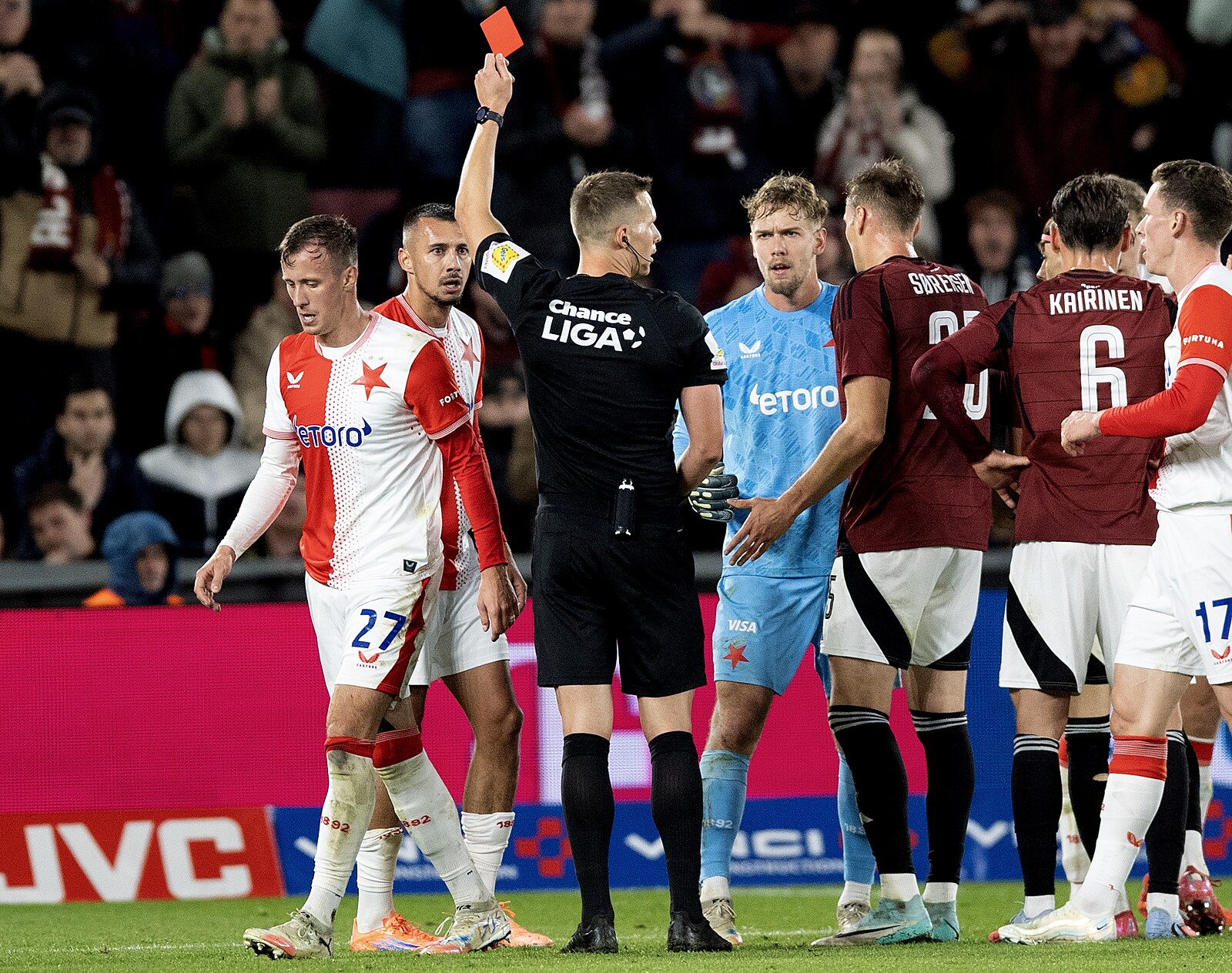 Hostující nešťastník si nepohlídal Birmančeviče, zezadu ho stáhl těsně před vápnem a dostal červenou kartu za zmaření zjevné brankové šance. I kdyby byl sudí shovívavý a dal mu jen žlutou kartu, byla by pro Vlčka v zápase už druhá. Pro sparťany škoda, že následný přímý kop z výhodné pozice nenechali kopat Rrahmaniho, Birmačevič vystřelil nepovedeně.