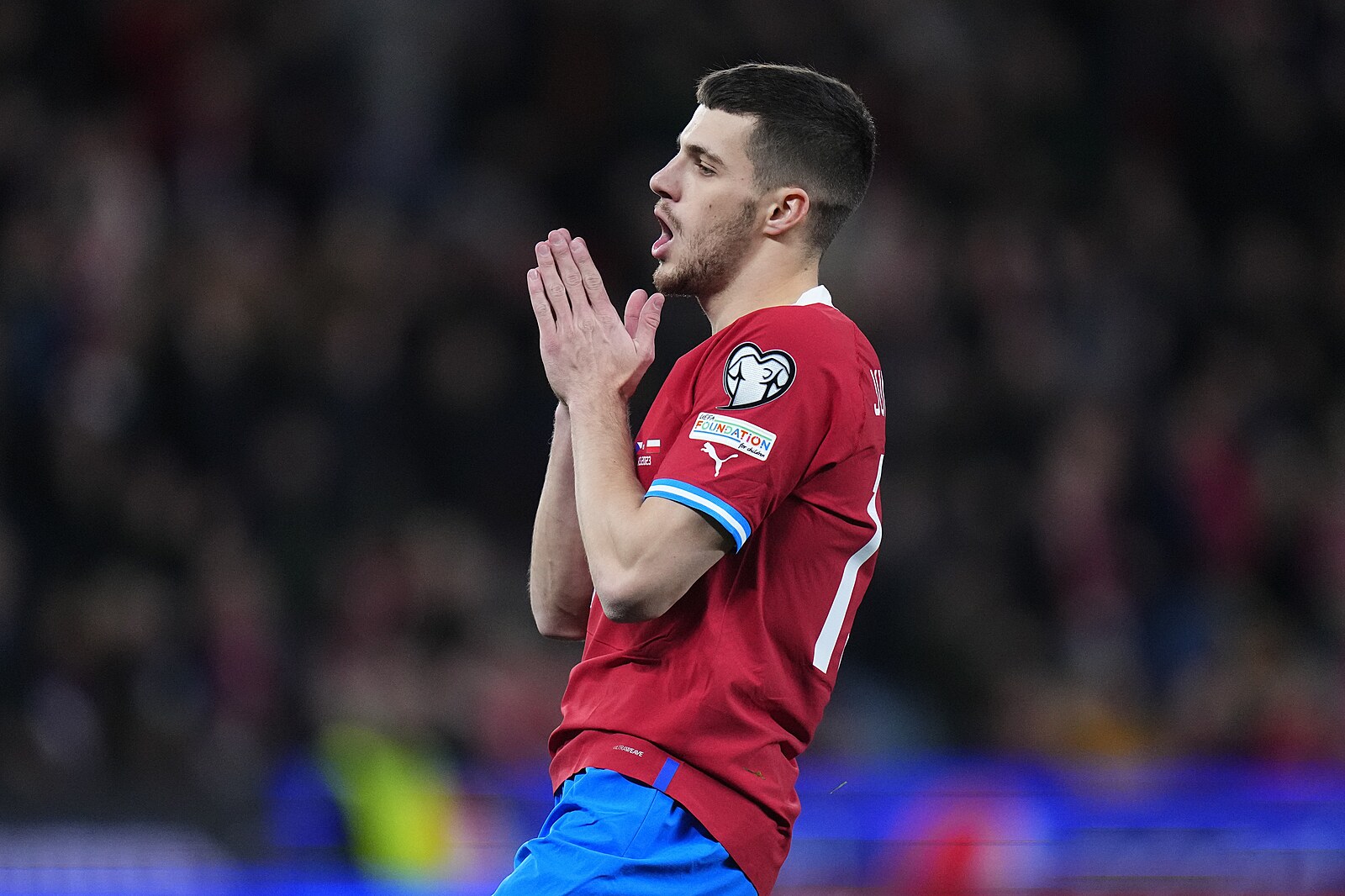 Obránce David Jurásek při premiéře v reprezentaci proti Polsku.