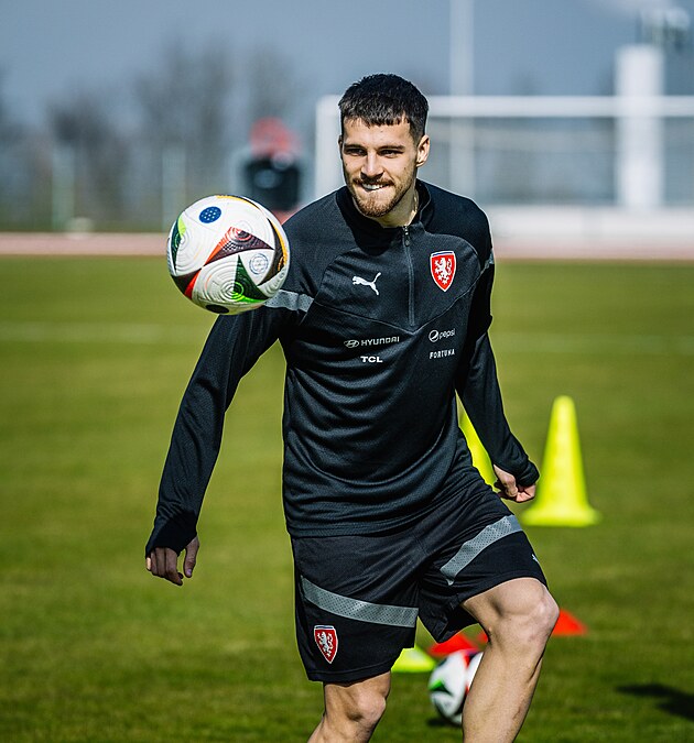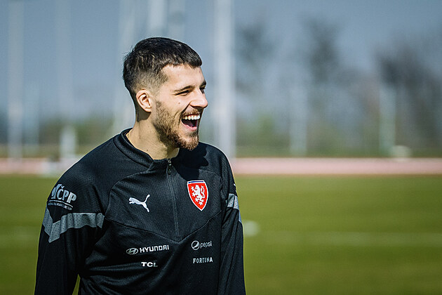 David Jurásek na tréninku fotbalové reprezentace před přípravným duelem v Norsku.