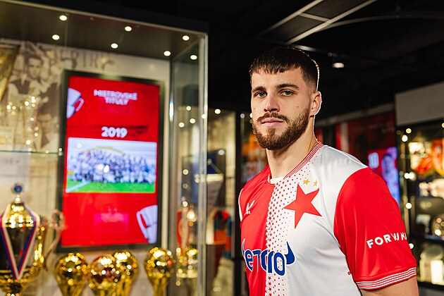 Čerstvá posila David Jurásek pózuje už ve slávistickém.
