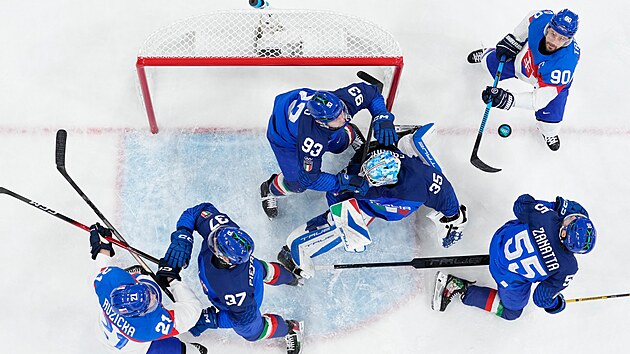 Po úvodní bezbrankové třetině se Slováci proti Italům prosadili dvakrát ve druhé části, domácí tým ale snížil na 1:2, potom i na 2:3 a do poslední chvíle bojoval o zvrat. Zatímco vítězové ještě neztratili, Italové opět nebodovali.