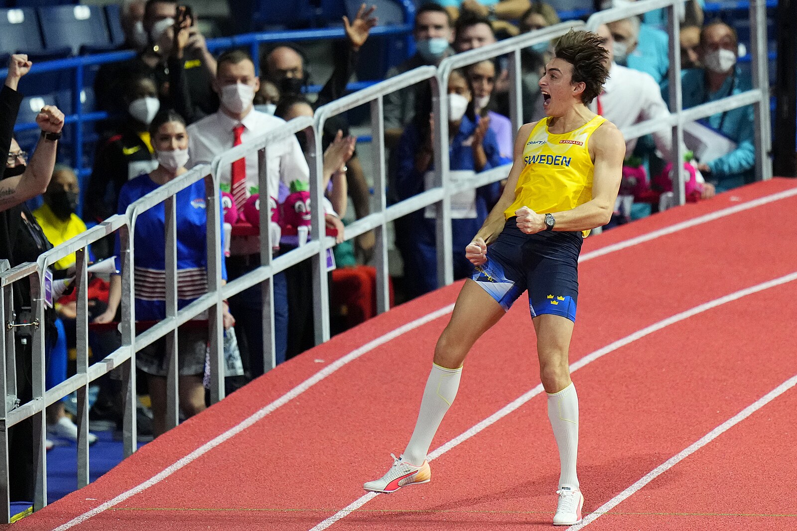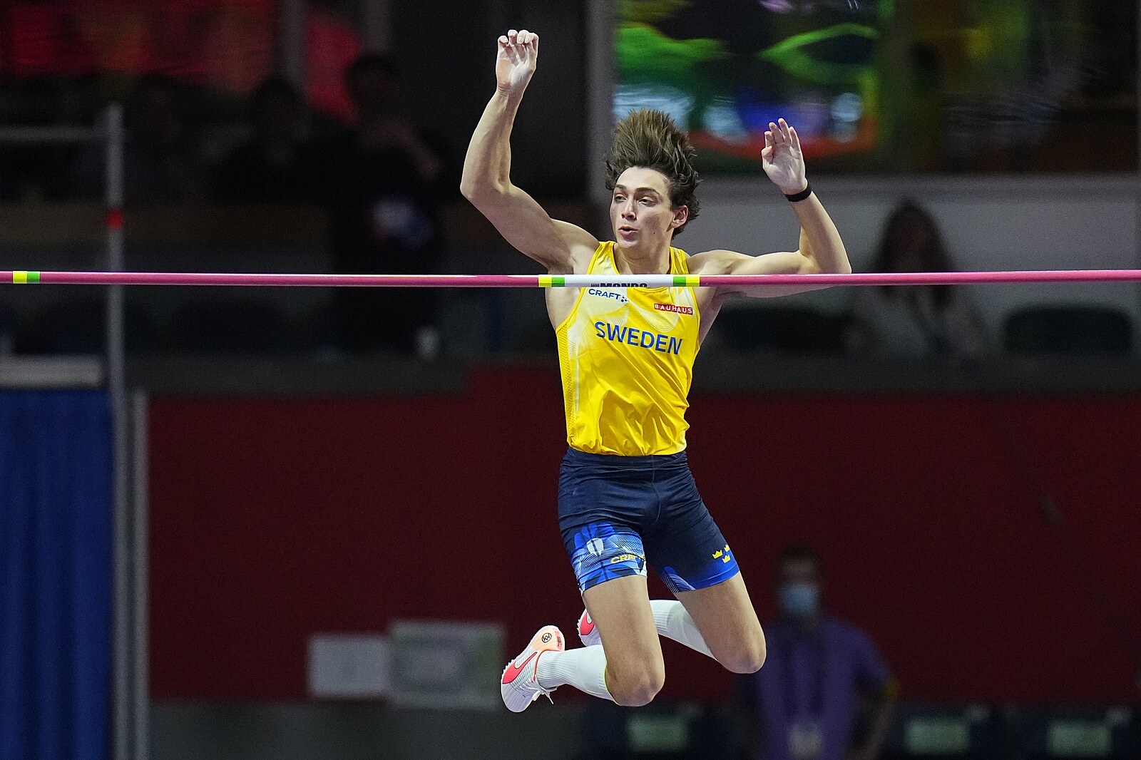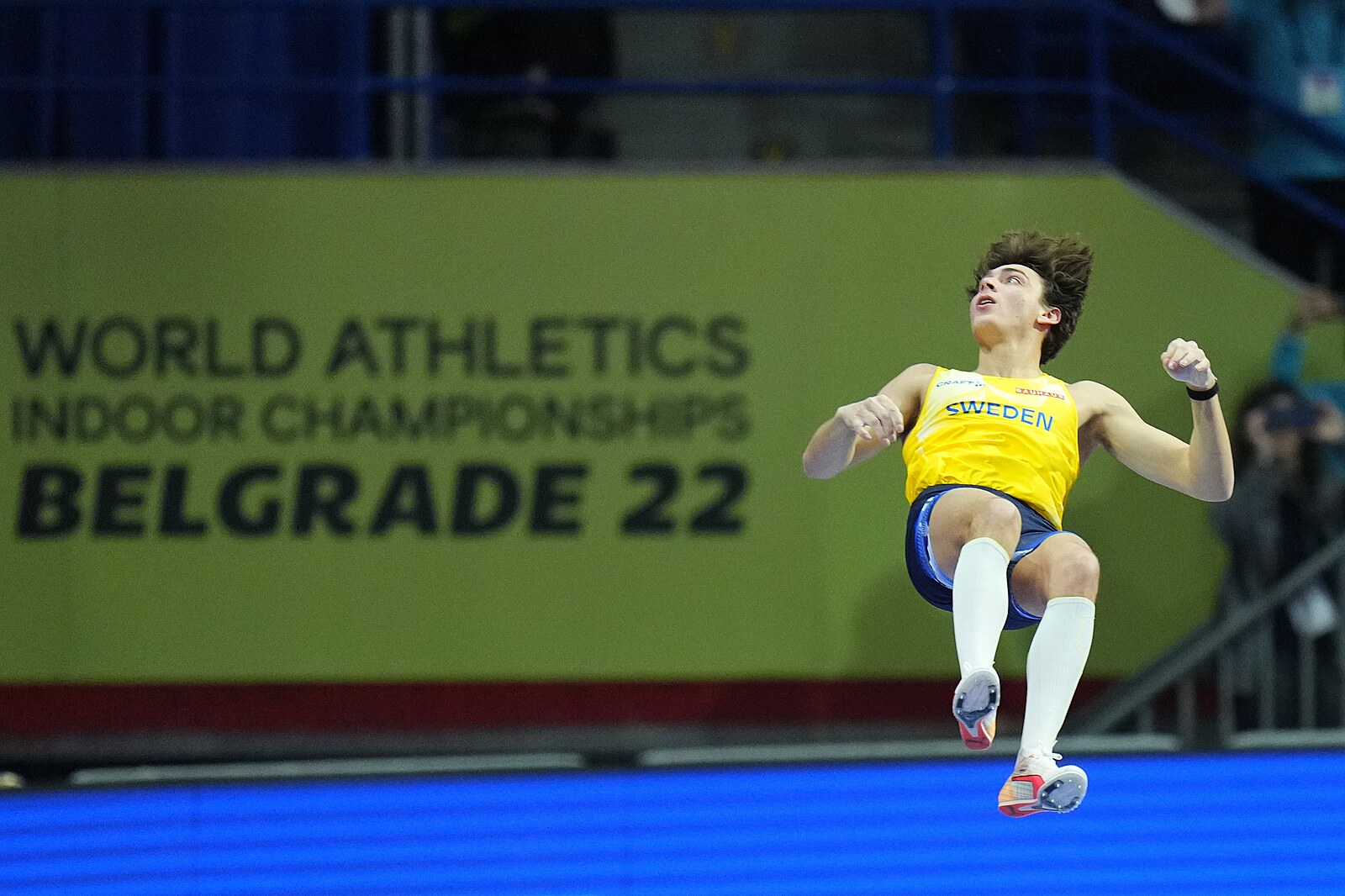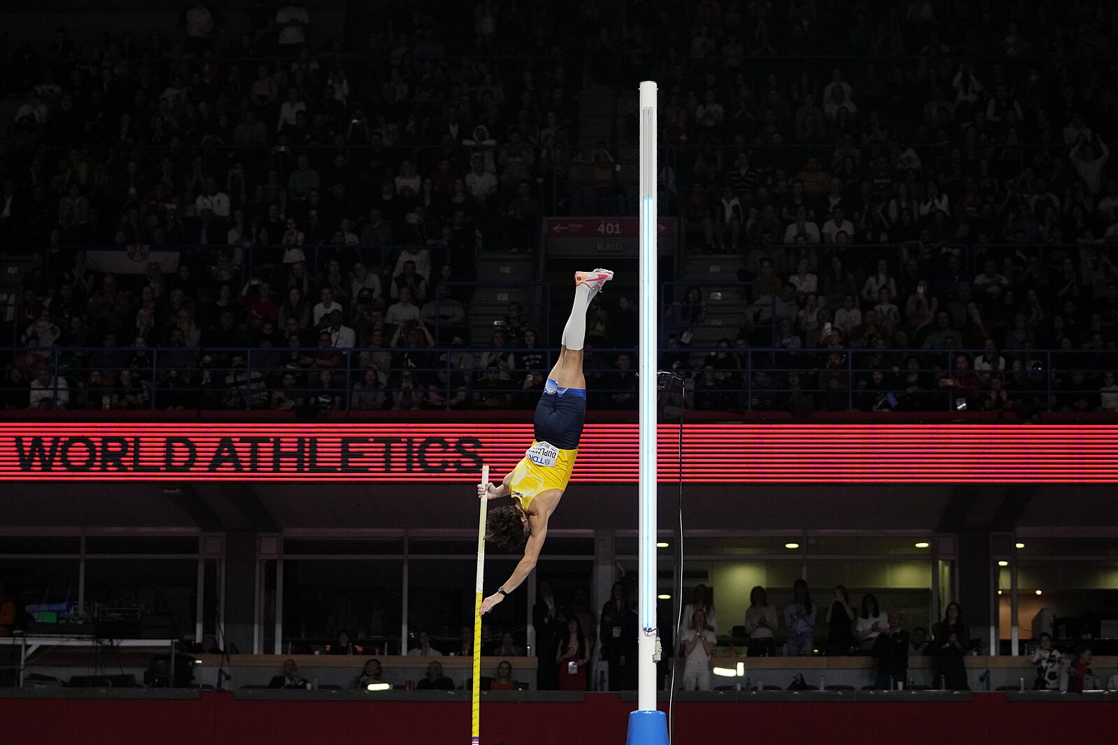 Švédský tyčkař Armand Duplantis překonává na halovém mistrovství světa v Bělehradě světový rekord pokořením výšky 620 cm.