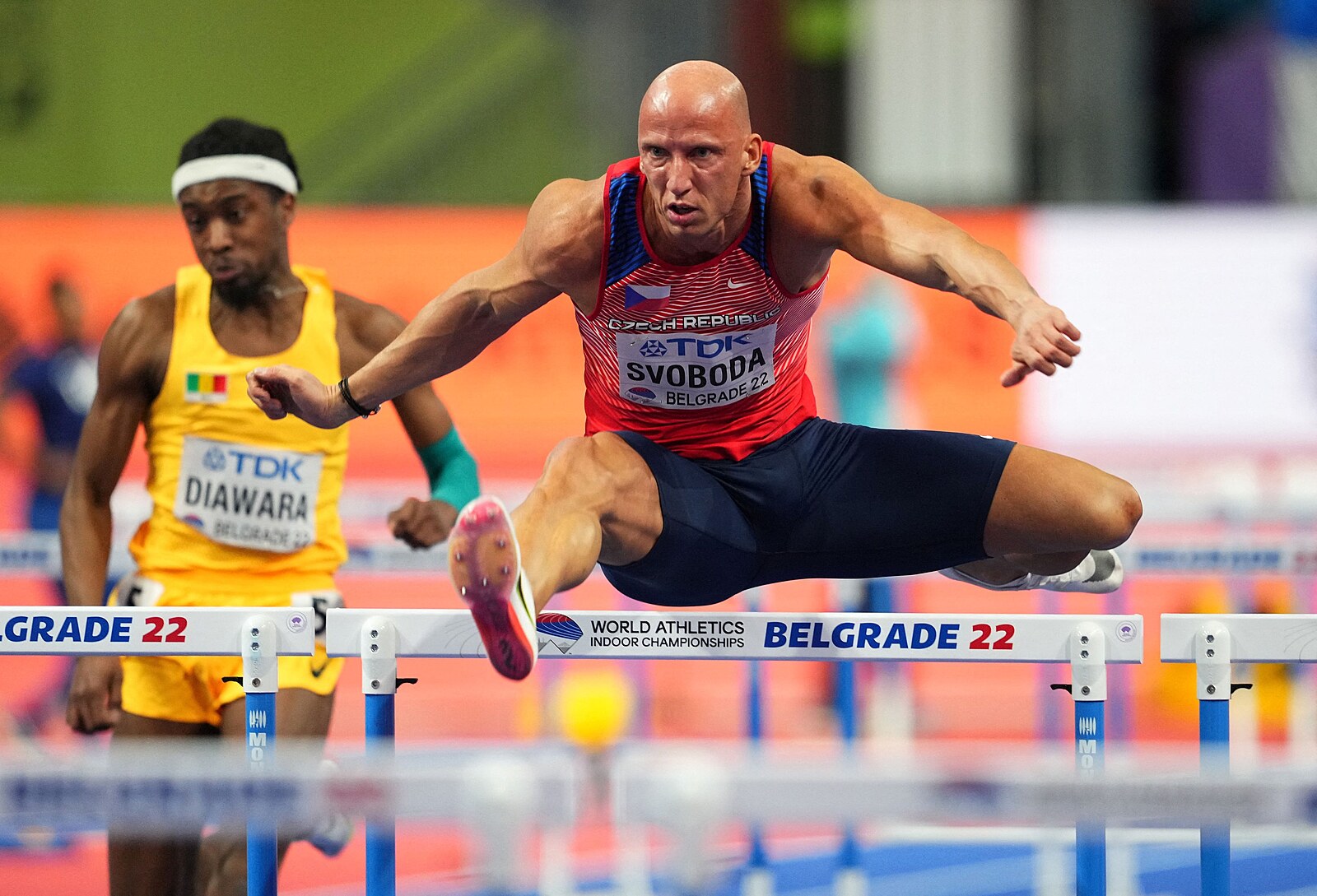 Český překážkář Petr Svoboda vítězí ve svém rozběhu v novém sezónním maximu 7,59 a postupuje na HMS v Bělehradě do semifinále.