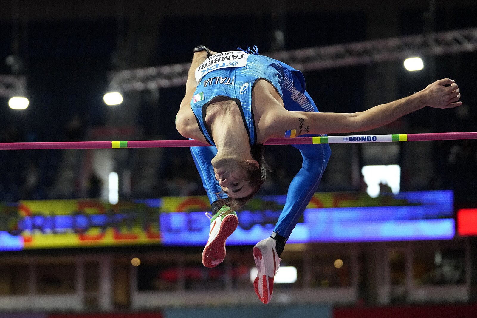 Italský výškař Gianmarco Tamberi během jednoho z pokusů na halovém mistrovství světa v Bělehradě