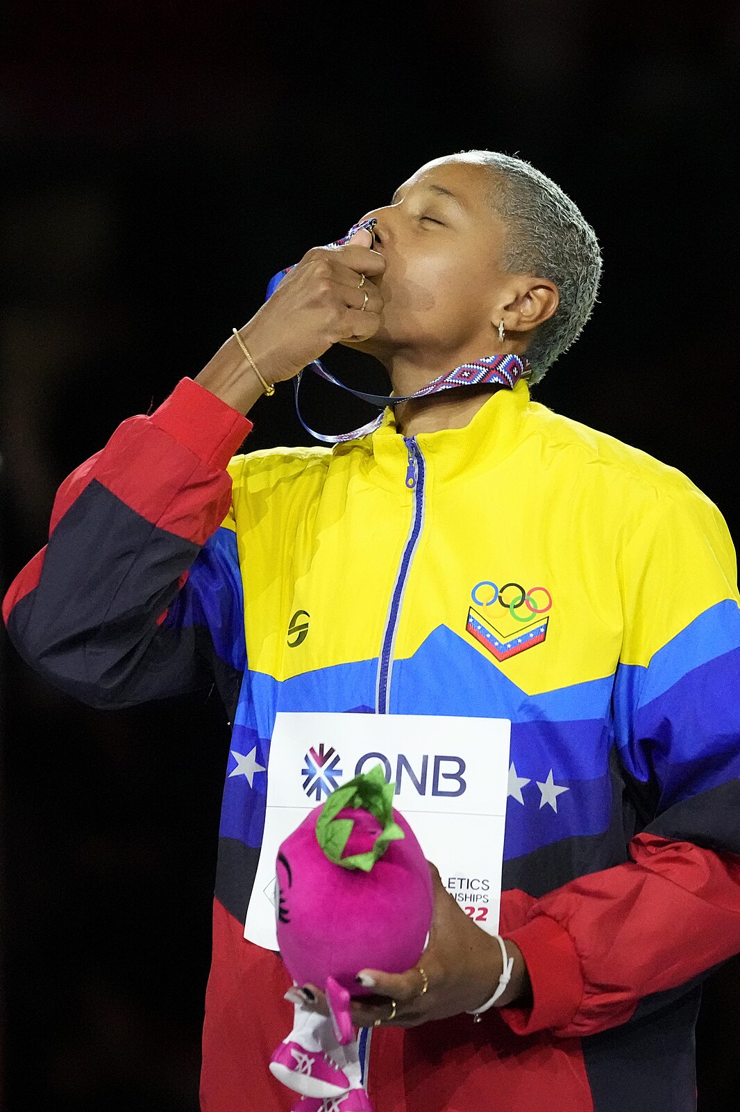 Venezuelská trojskokanka Yulimar Rojasová se zlatou medailí na halovém mistrovství světa v Bělehradě