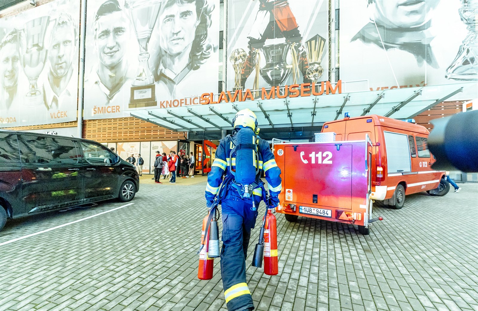 Ve středu večer pražští hasiči na twitteru uvedli, že střecha novinářské části stadionu v Edenu se vznítila od světlice. Dnes ráno informaci upřesnili. „Příčinou menšího požáru podhledu tribuny byla technická závada elektroinstalace světla. Na místě to zjistil hasičský vyšetřovatel,“ oznámili hasiči.