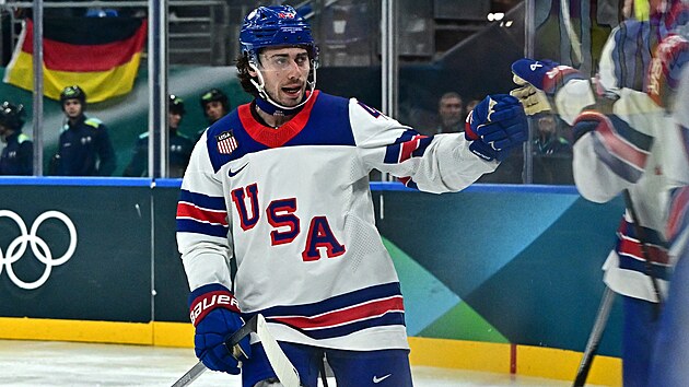 Přejít na online reportážVýhru týmu USA nad Němci řídil třemi body za dva góly a nahrávku Auston Matthews, Američané stejně jako jejich zámořský rival Kanada ovládli skupinu bez ztráty jediného bodu a s celkovým skóre 16:5.