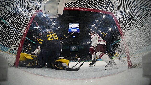 Za 31 sekund už to bylo 2:0. Landeskog si zpracoval nohou puk odražený od Raymonda a forhendem skóroval. Švédové se ubránili při Forslingově vyloučení, při které pálil nebezpečně Balinskis. Na přelomu první a druhé třetině odolali Lotyši při Šmitsově trestu.
