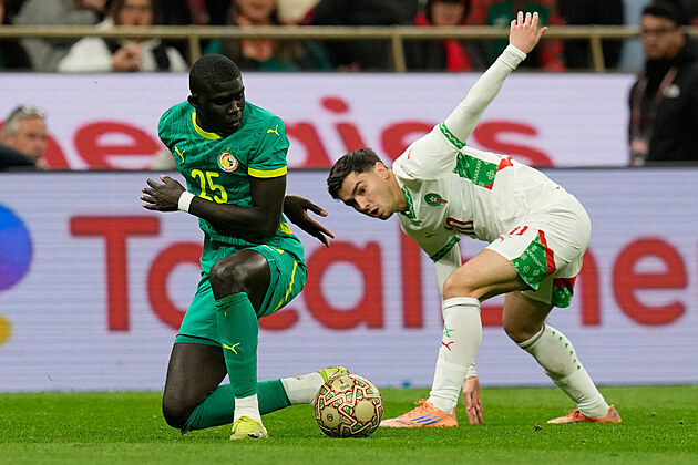 Senegalský obránce El Hadji Malick Diouf (vlevo) a Brahim Díaz z Maroka