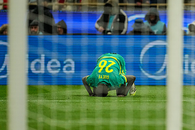 Senegalský obránce El Hadji Malick Diouf poté, co zavinil penaltu v nastaveném čase finále afrického šampionátu