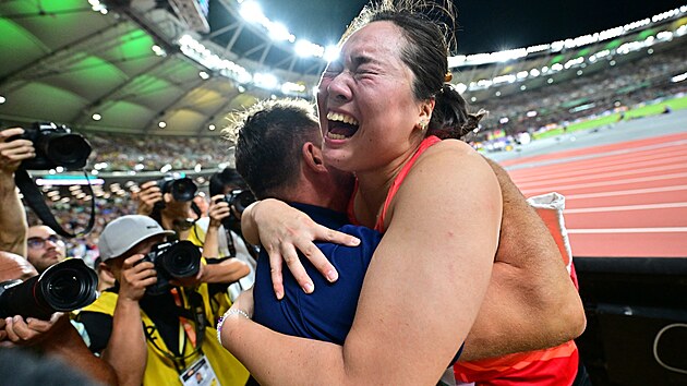 Japonka připravující se v Česku je autorkou nejdelšího hodu sezony, ve finále na šampionátu se jí ale nevedlo a do poslední série vstupovala ze čtvrté pozice. Pak ale předvedla úžasný hod až na 66,73. A především daleko před všechny ostatní soupeřky. Její český podpůrný tým vybuchl na tribunách nadšením.