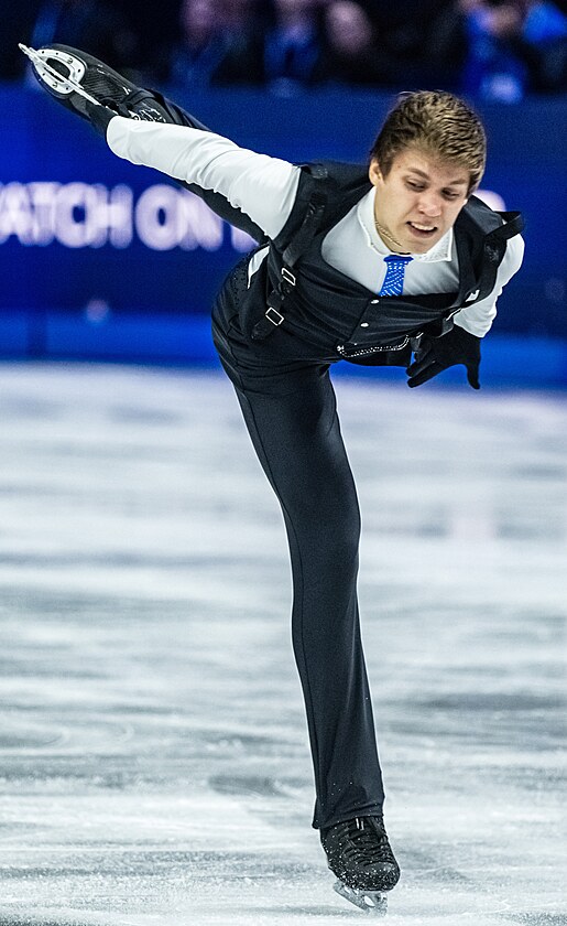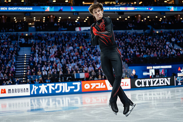 Momentka z krátkého programu mužů na mistrovství světa v krasobruslení.